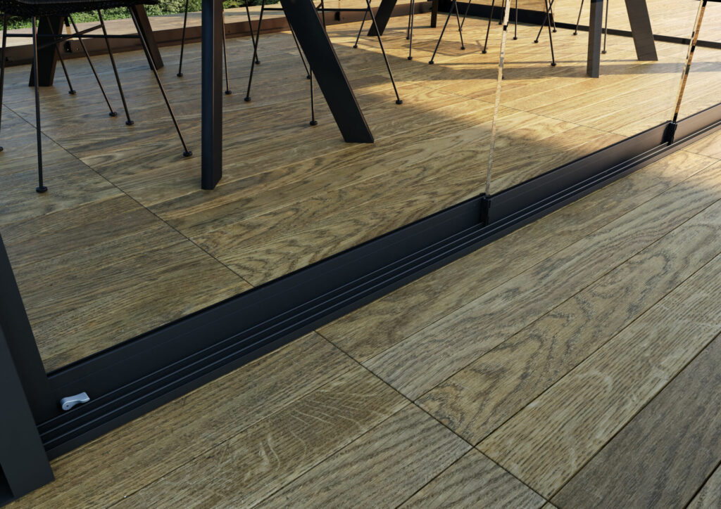 Line Glass consente di ricavare un ambiente domestico che dialoga contemporaneamente con interno ed esterno attraverso agili vetrate protettive con caratteristiche tecnico-costruttive e profilo estetico tali da ridurre al minimo l’impatto visivo e l’ingombro apparente, in linea con i requisiti del del DL Aiuti bis che prevede anche gli interventi di realizzazione e installazione di vetrate panoramiche amovibili vepa e totalmente trasparenti.