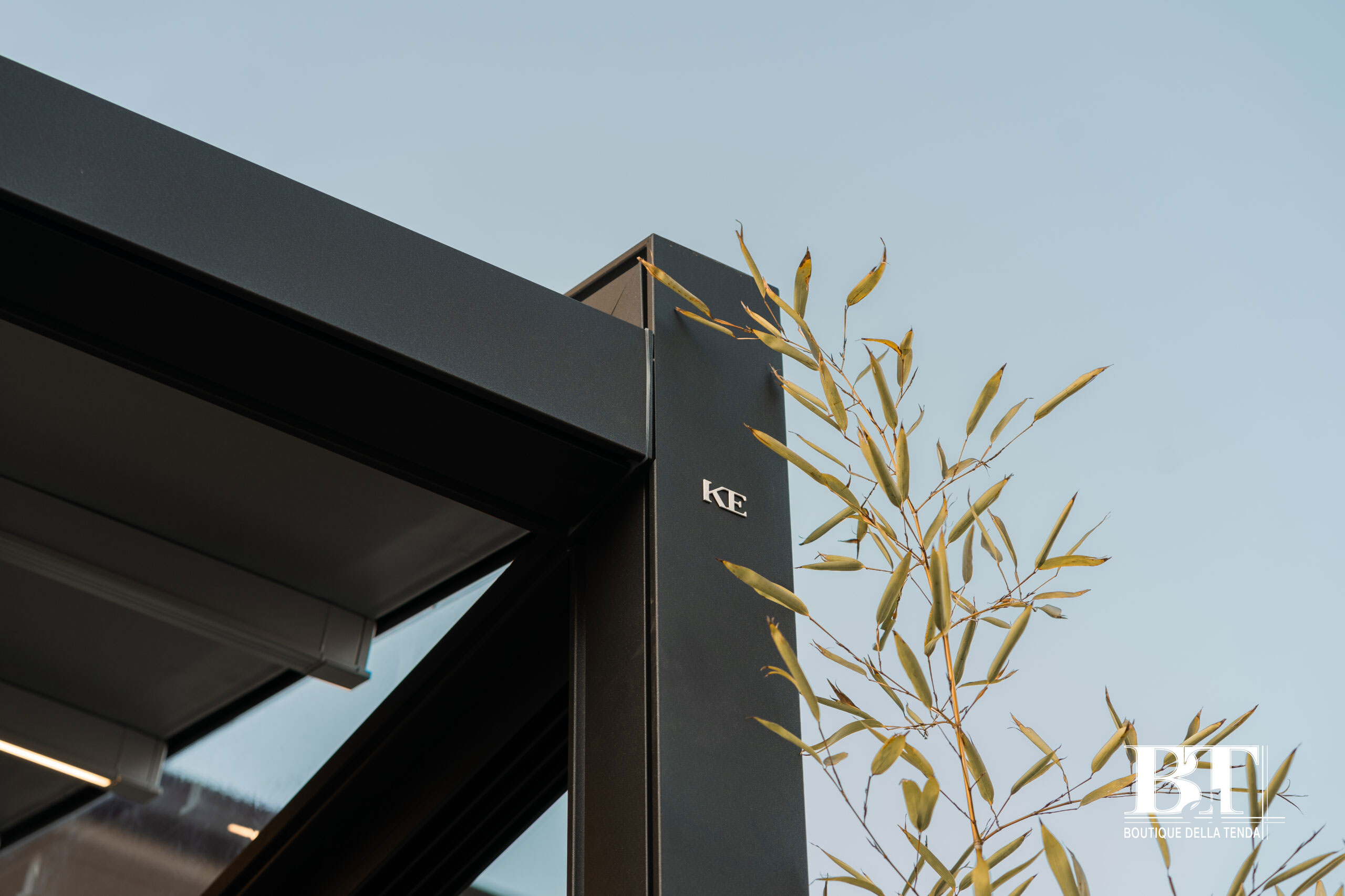 Le pergole bioclimatiche KE Outdoor Design offrono copertura elegante e comfort climatico, grazie al tetto a lame orientabili che regola ombra, ventilazione e luce naturale.
