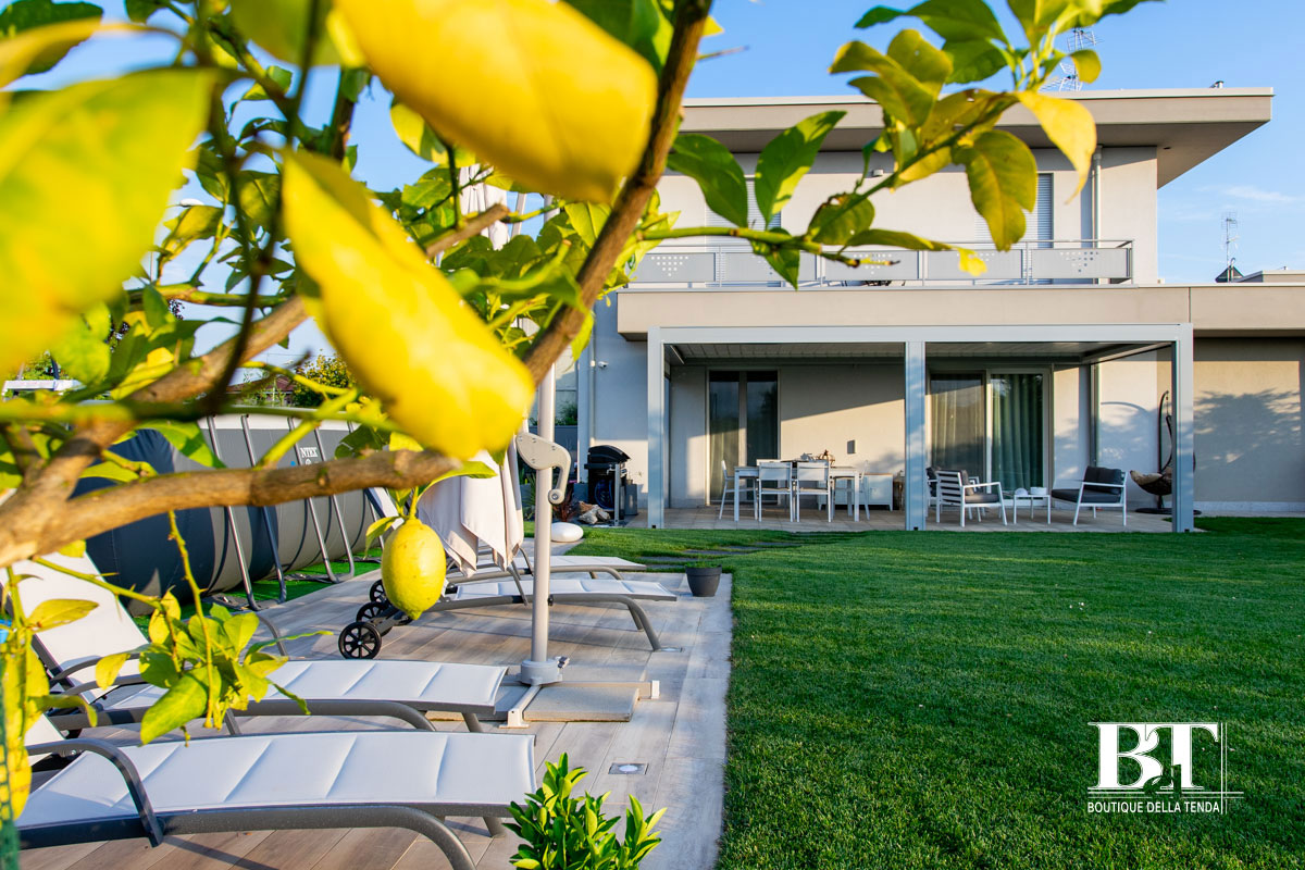 Siamo stati contattati dai proprietari per sviluppare un progetto outdoor che fosse in linea con lo stile essenziale dell’abitazione e con le linee moderne della facciata, rivestita da listelli d’alluminio color legno.