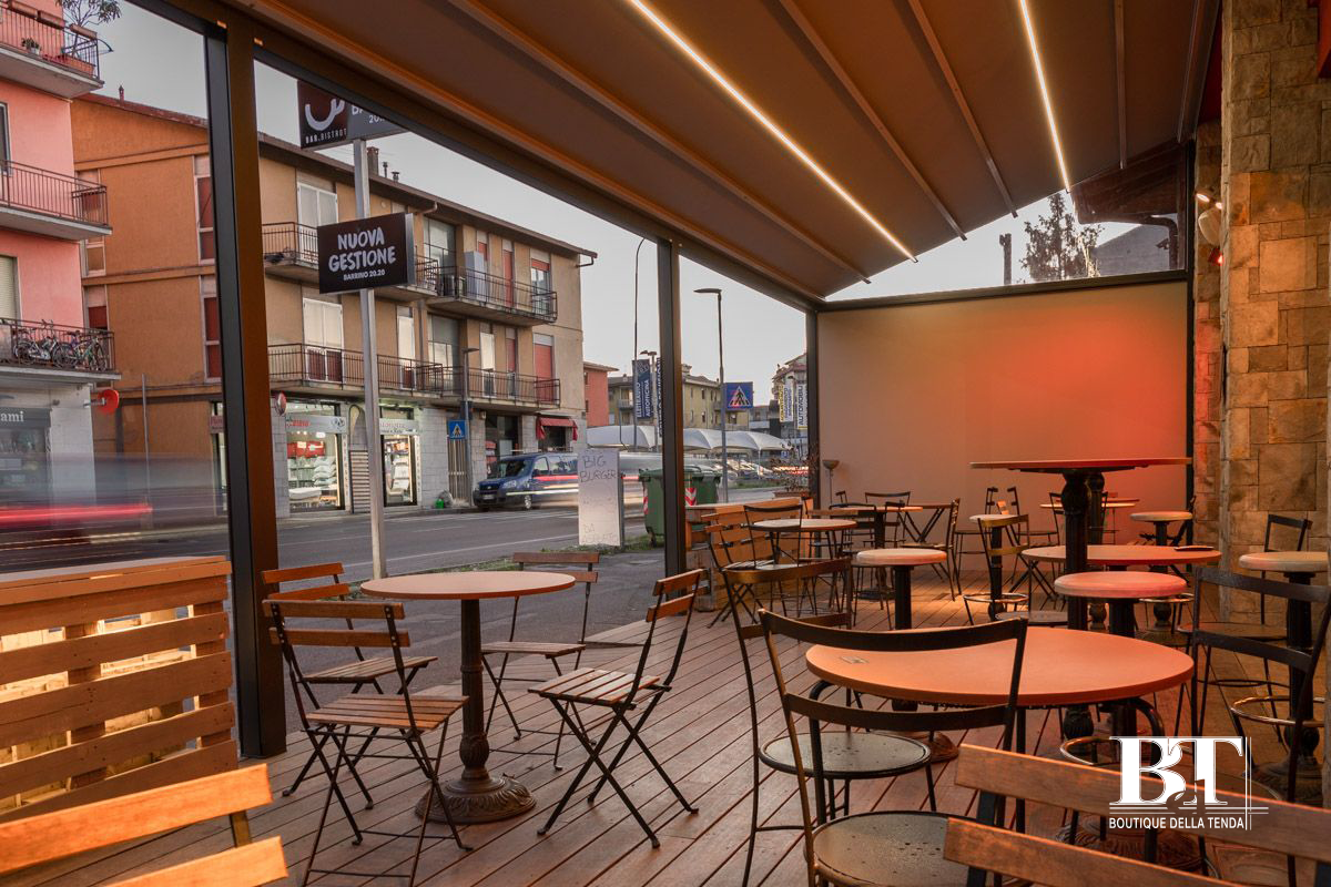 Installazione della tenda a pergola Gennius Vega a Seriate (Bergamo).